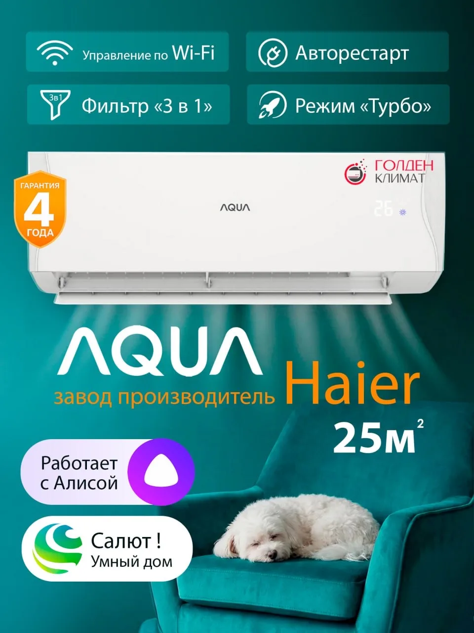 При покупке любой сплит системы Aqua базовый монтаж в подарок.